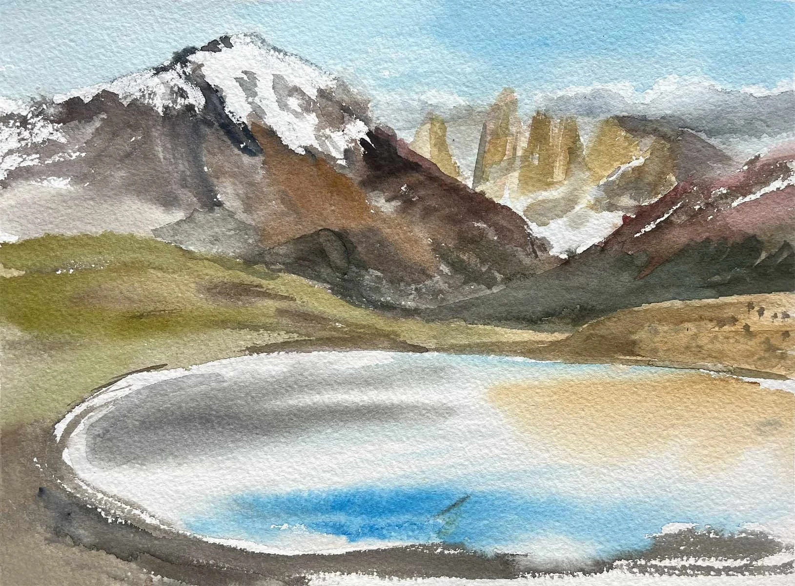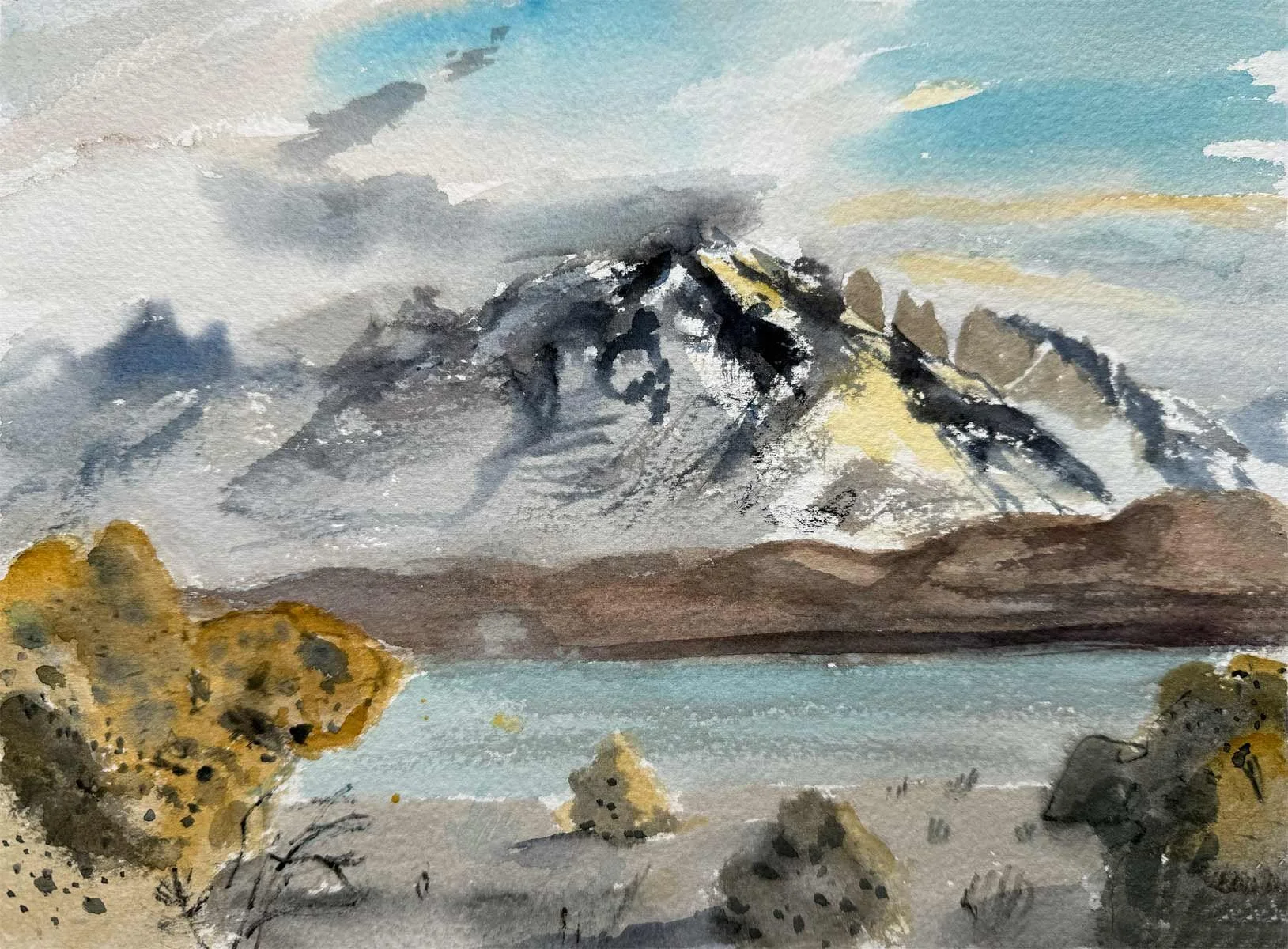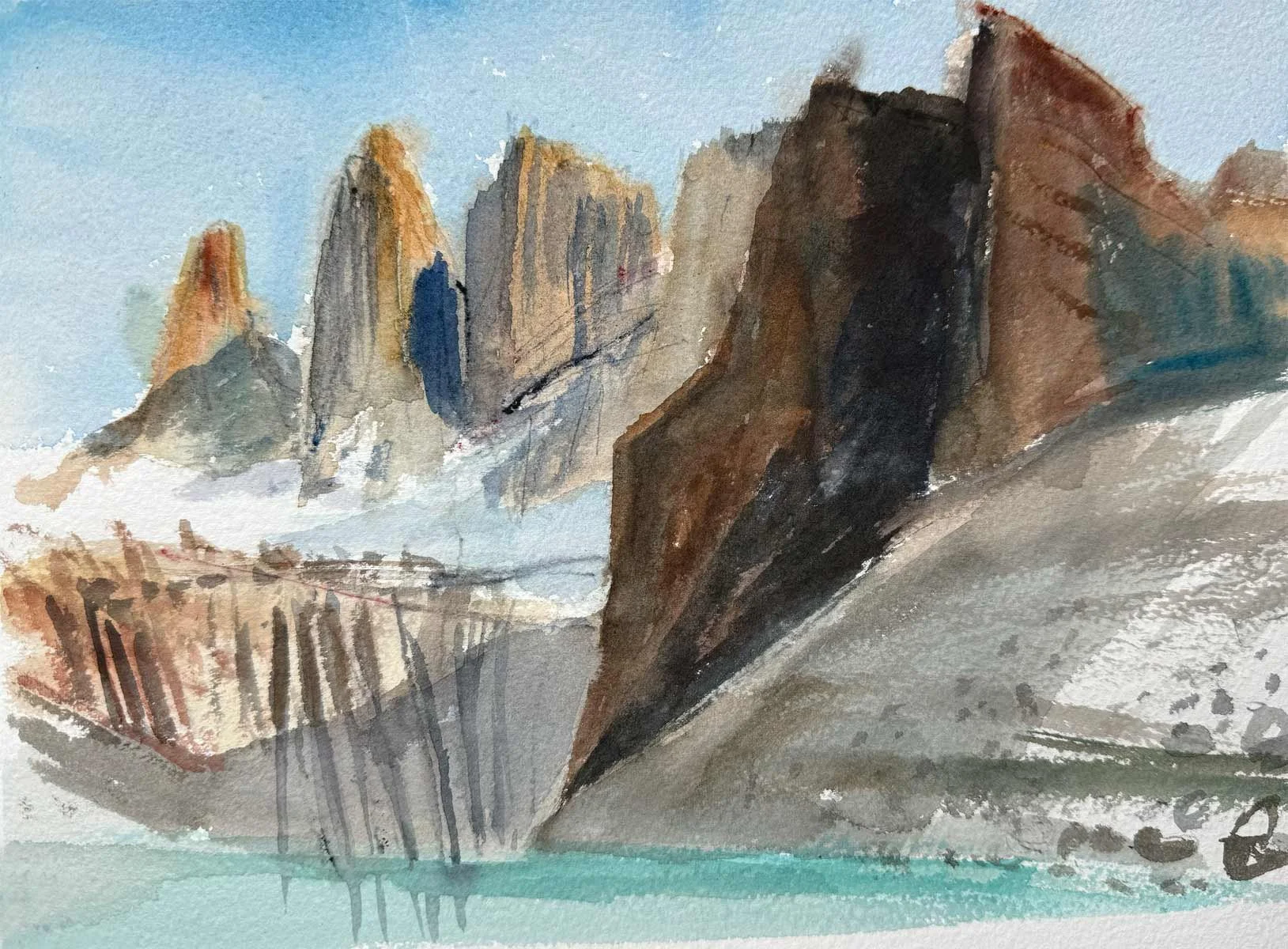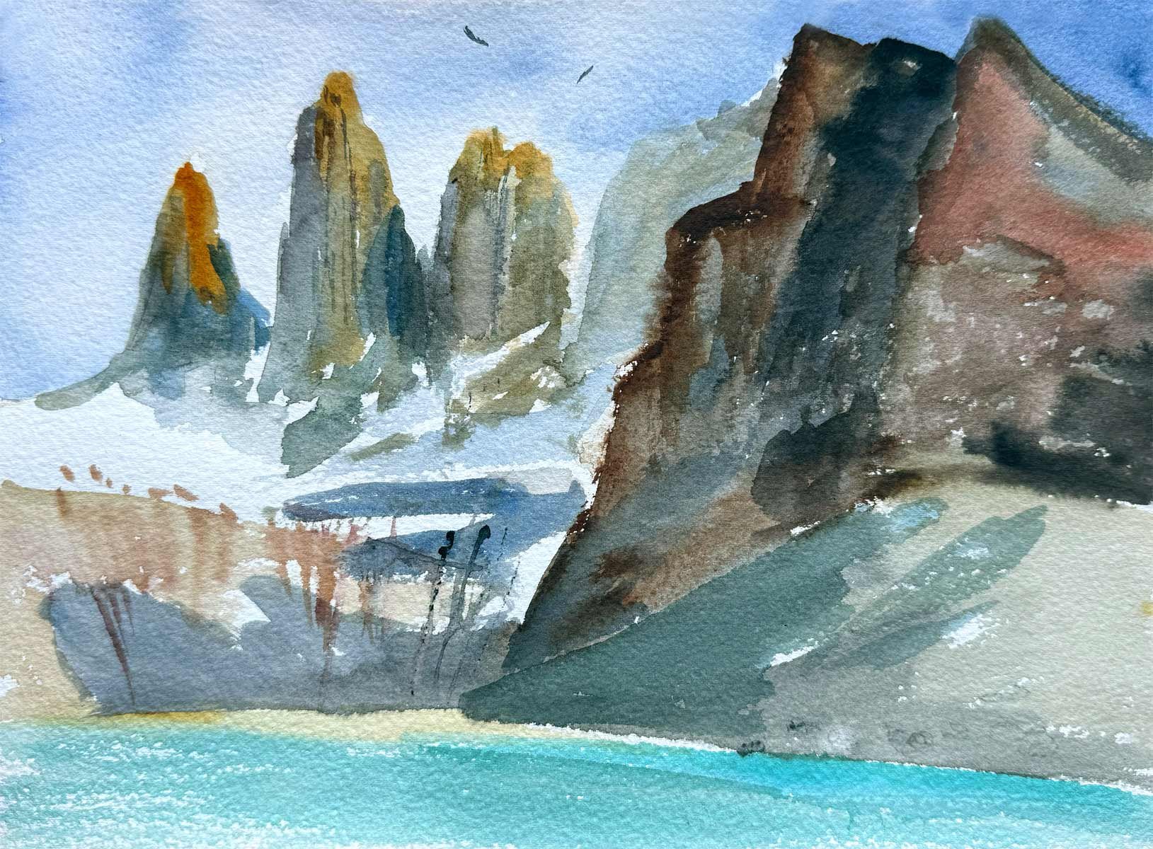 This collection of watercolors painted in situ, in Torres del Paine and its surroundings, is the result of a direct dialogue with the landscape, where the wind, shifting light, cold and vastness dictate the movement of the brush.
