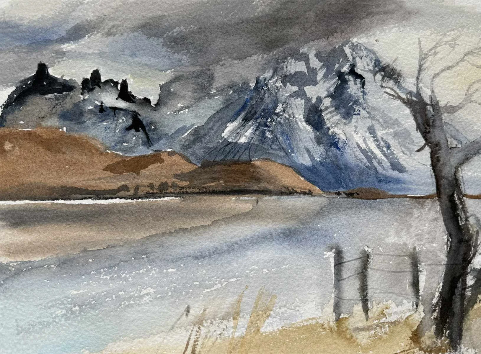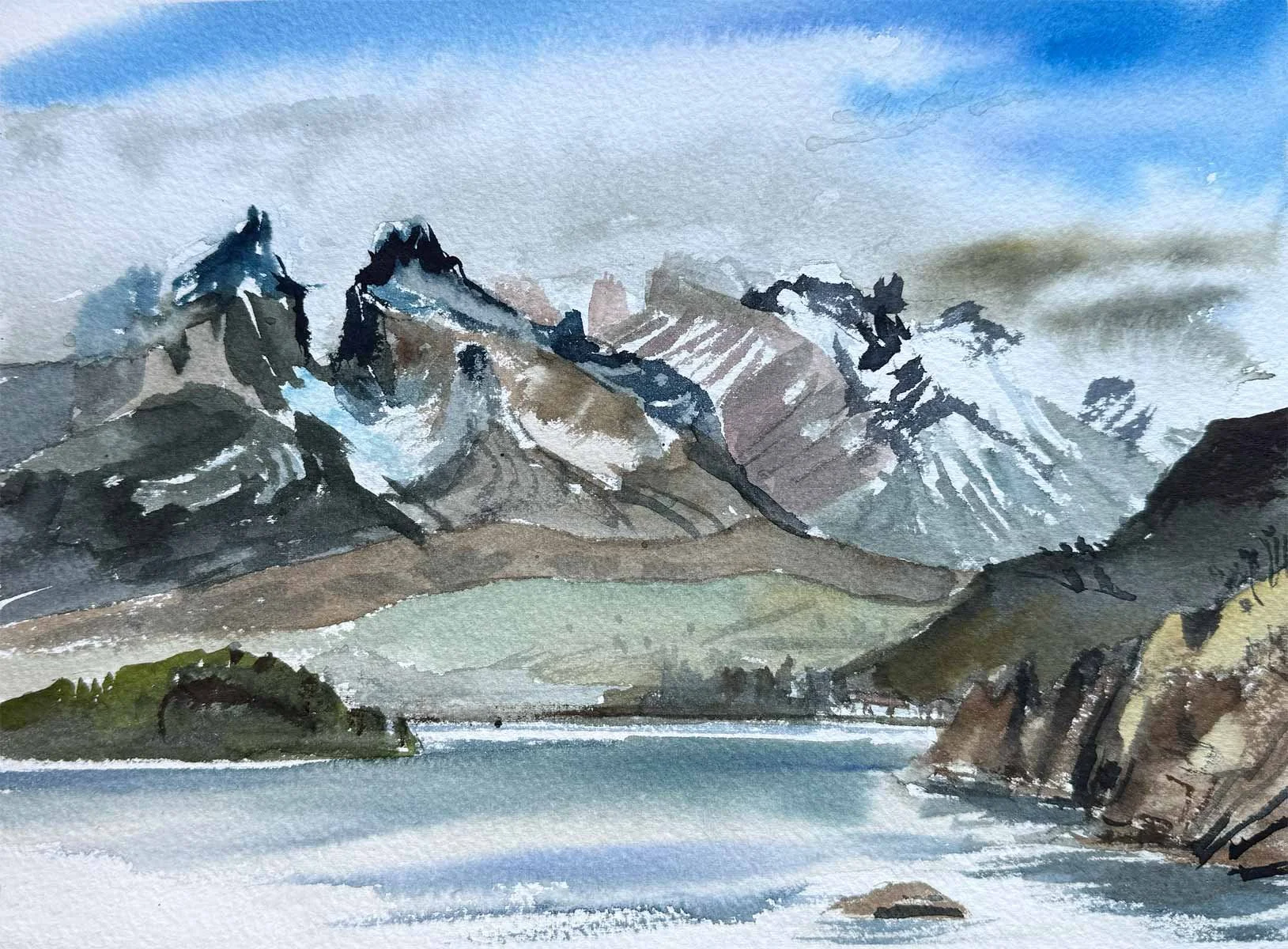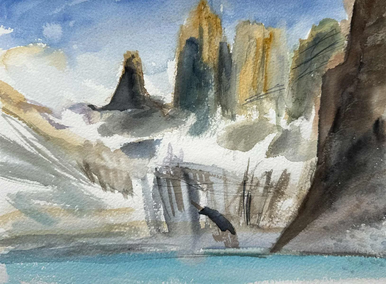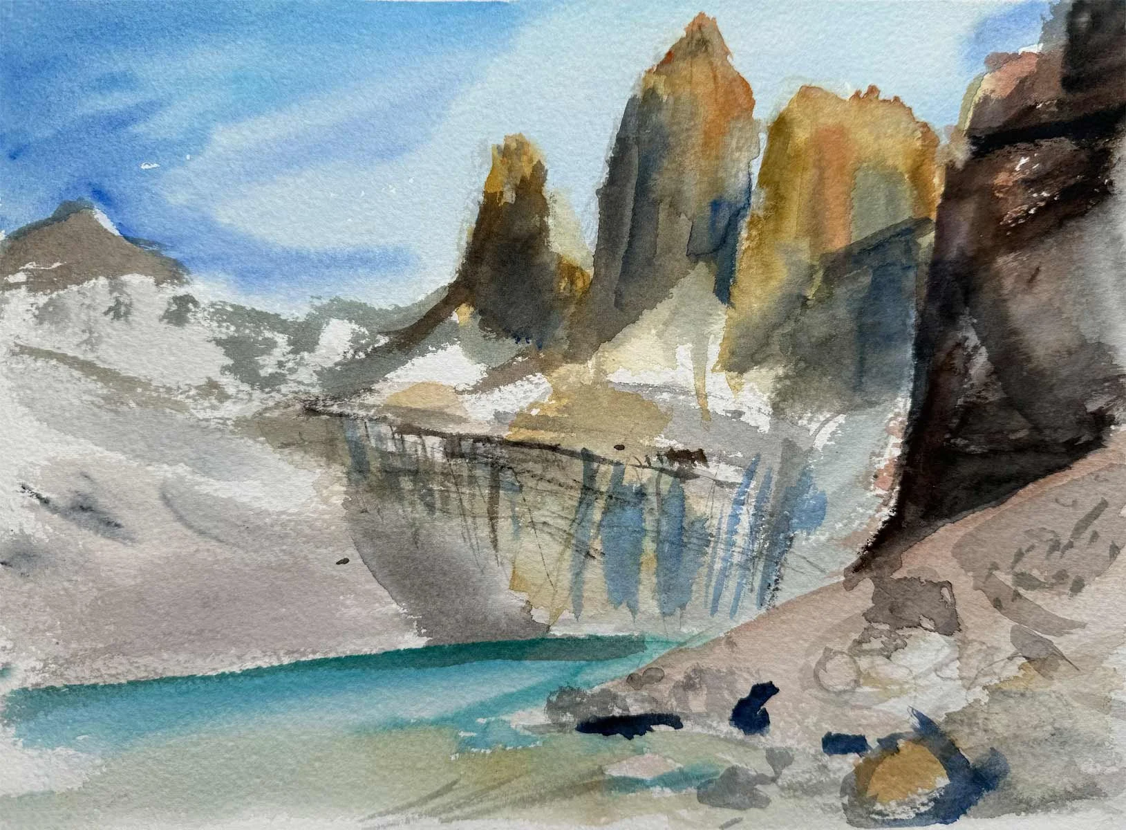 This collection of watercolors painted in situ, in Torres del Paine and its surroundings, is the result of a direct dialogue with the landscape, where the wind, shifting light, cold and vastness dictate the movement of the brush.